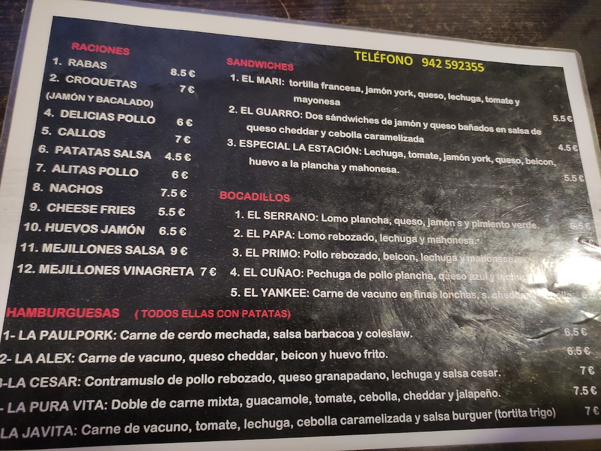La Estación De Pomaluengo offers a delightful variety of traditional Spanish dishes, with a clear focus on hearty, flavorful meals that showcase the rich culinary heritage of Cantabria. The menu features a selection of options that cater to both meat lovers and seafood enthusiasts. For those craving a filling and robust dish, Paella Mixta stands out as a must-try. Packed with a mix of fresh seafood, tender chicken, and savory vegetables, it delivers an authentic taste of Spanish comfort food. Another highlight is the Callos Con Patatas Y Jamón Ibérico, a flavorful tripe stew with a comforting combination of potatoes and the richness of Iberian ham. The menu also offers a selection of tapas and more regional specialties, ensuring that there’s something to satisfy every palate. Whether you’re in the mood for a light snack or a hearty meal, La Estación De Pomaluengo’s menu provides a fantastic taste of local cuisine with generous portions and delightful flavors.
